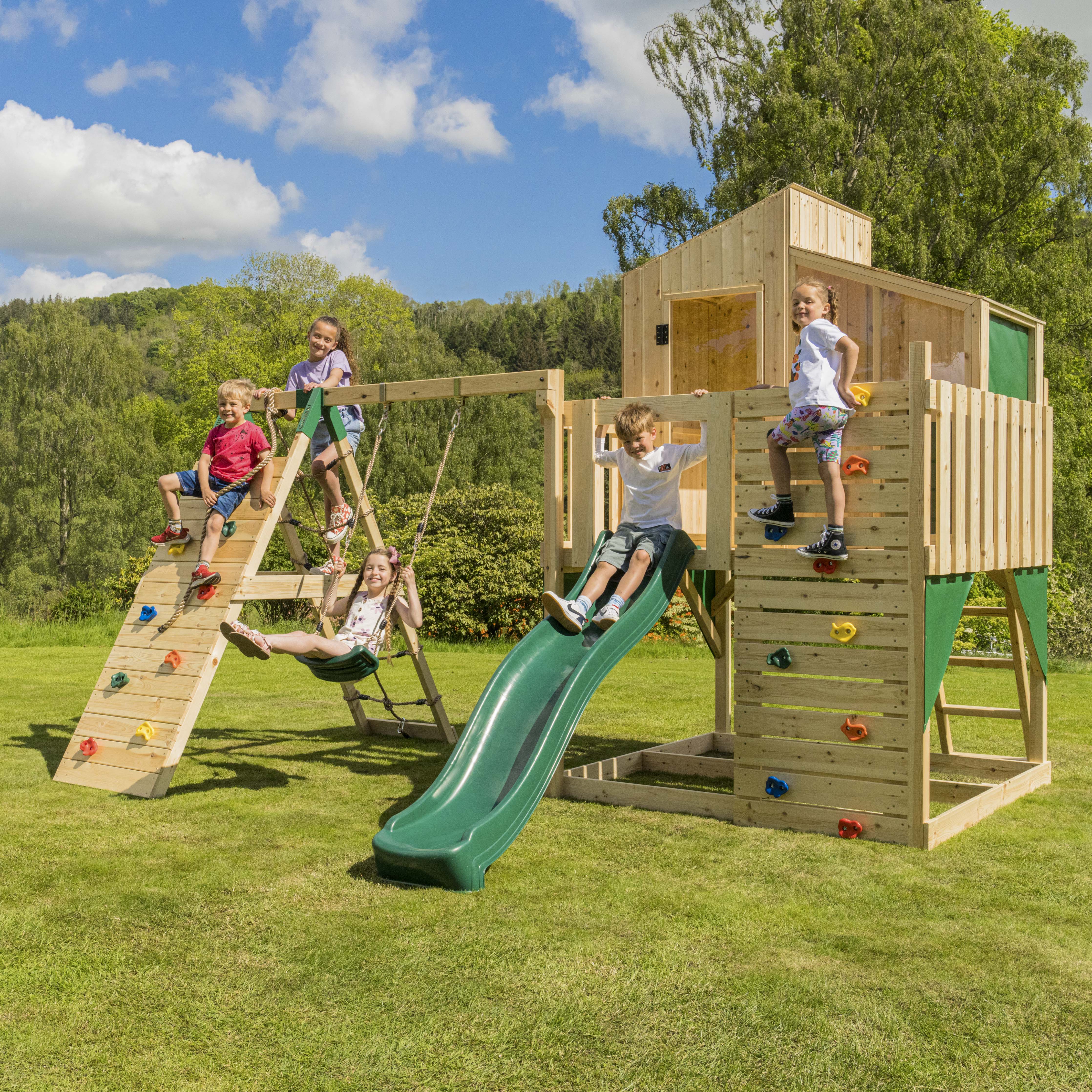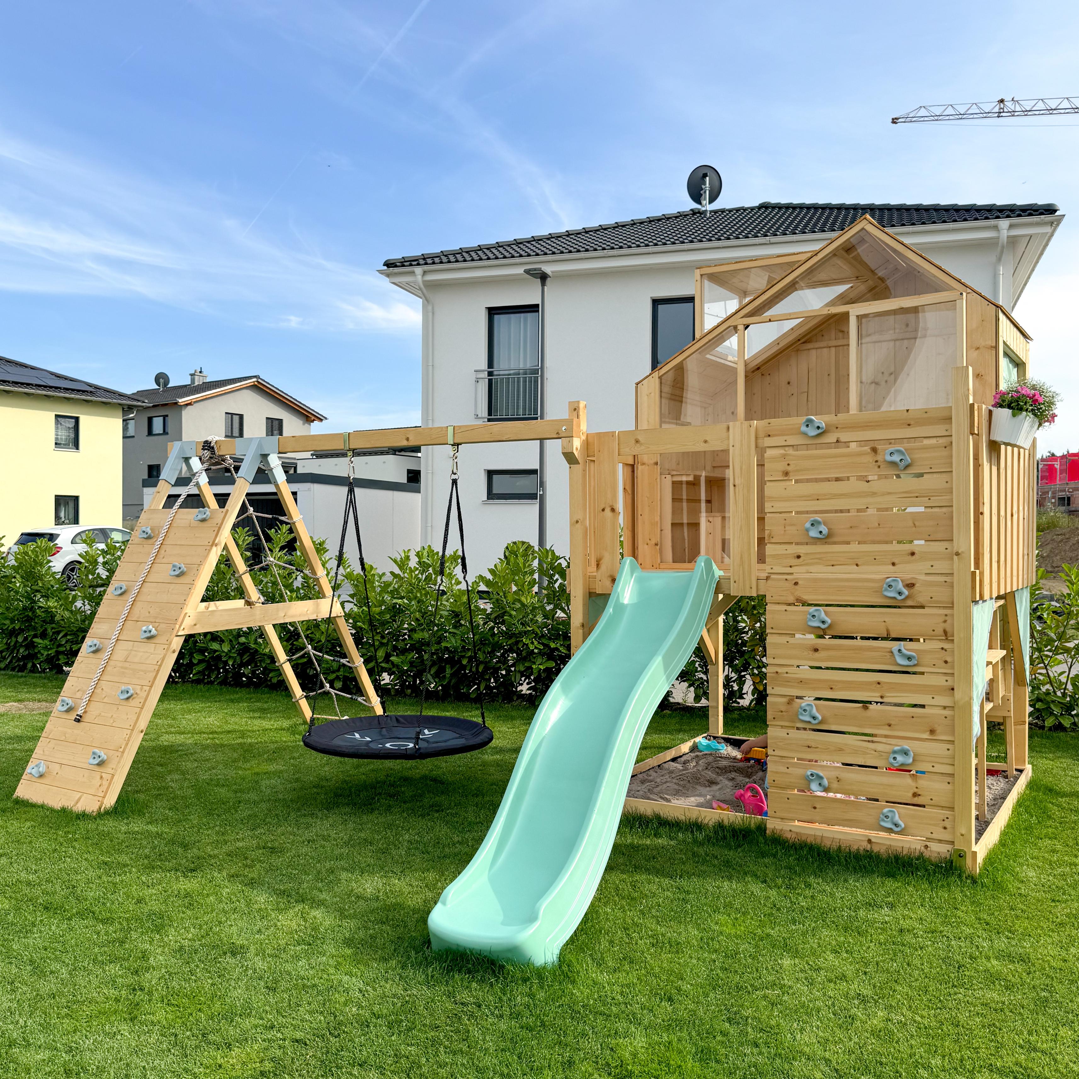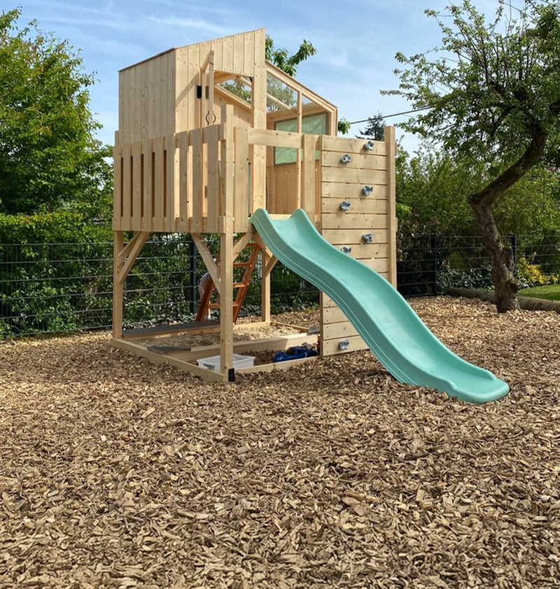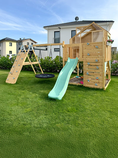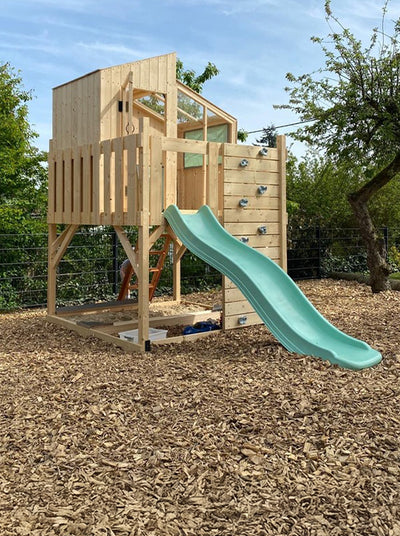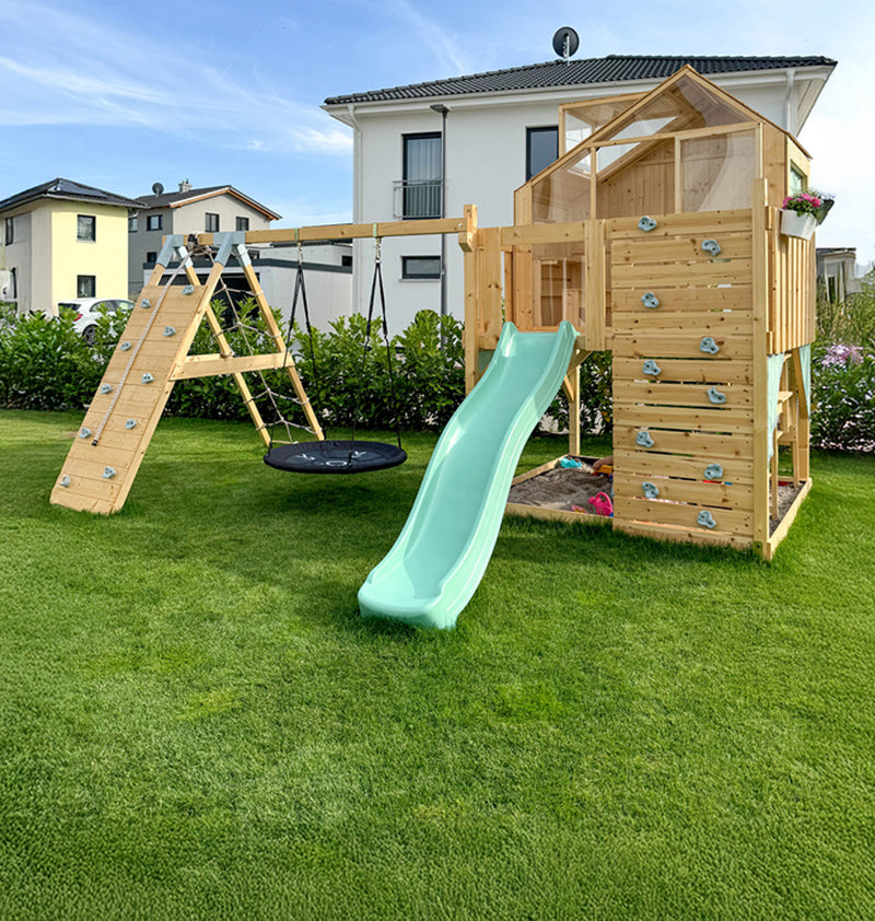Wir versprechen dir eins: Wir haben für jede Grundstücksgröße die passenden Outdoor Spielgeräte. Wenn du nur einen kleinen Garten hast, kannst du dich für ein Spielhaus entscheiden. Wenn du stattdessen ein vielfältiges Spielgerät suchst, das verschiedene Spielangebote vereint, sind unsere Klettertürme und ideal. Sie laden mit Rutsche und Schaukeln zum ausgelassenen Toben ein. Teilweise halten unsere Klettertürme auch ein kleines Spielhaus bereit, in dem Kinder in verschiedene Rollenspiele eintauchen können. Alle Outdoor Spielgeräte aus unserem Haus bieten dir zudem die Möglichkeit, diese individuell nach den Wünschen deines Kindes zu gestalten.