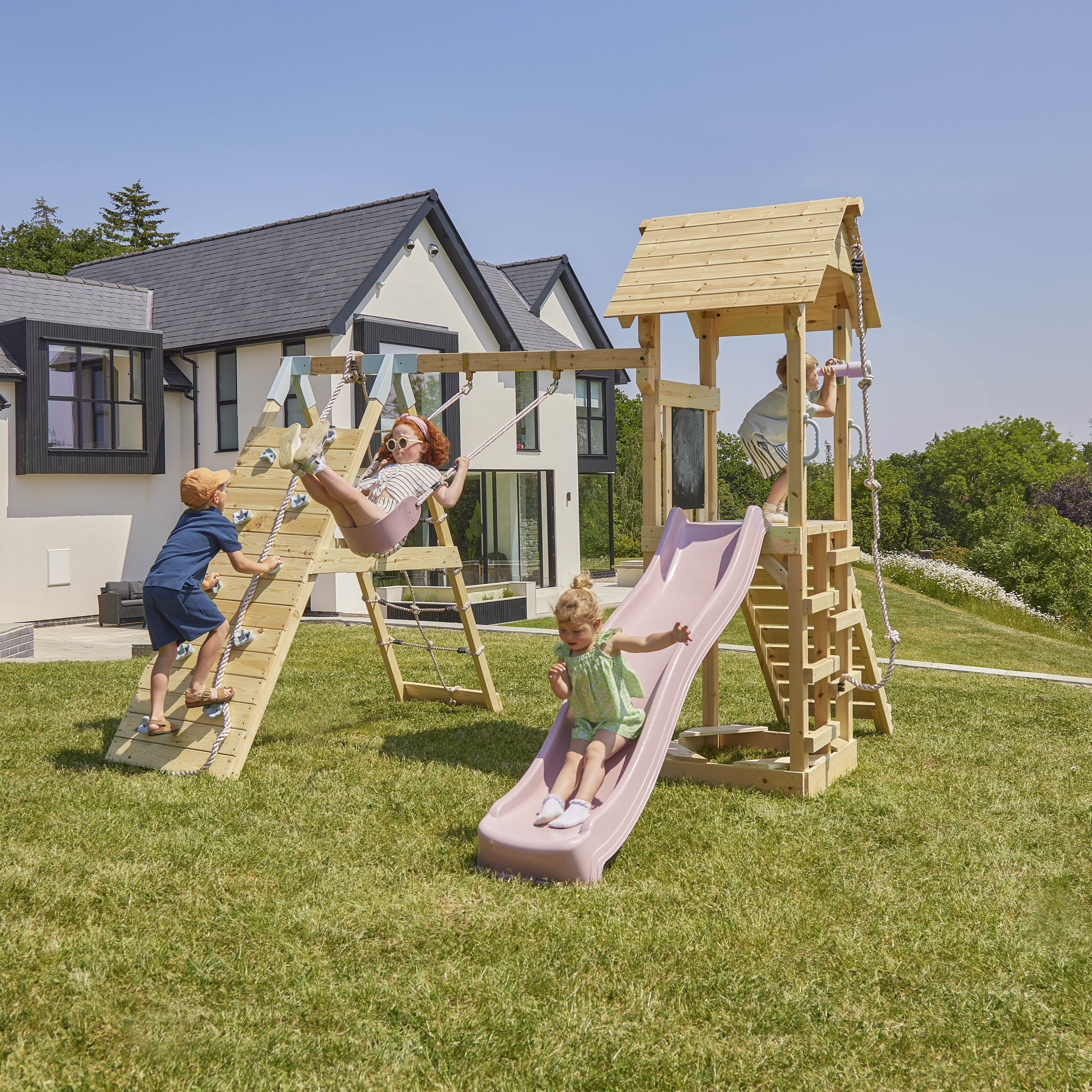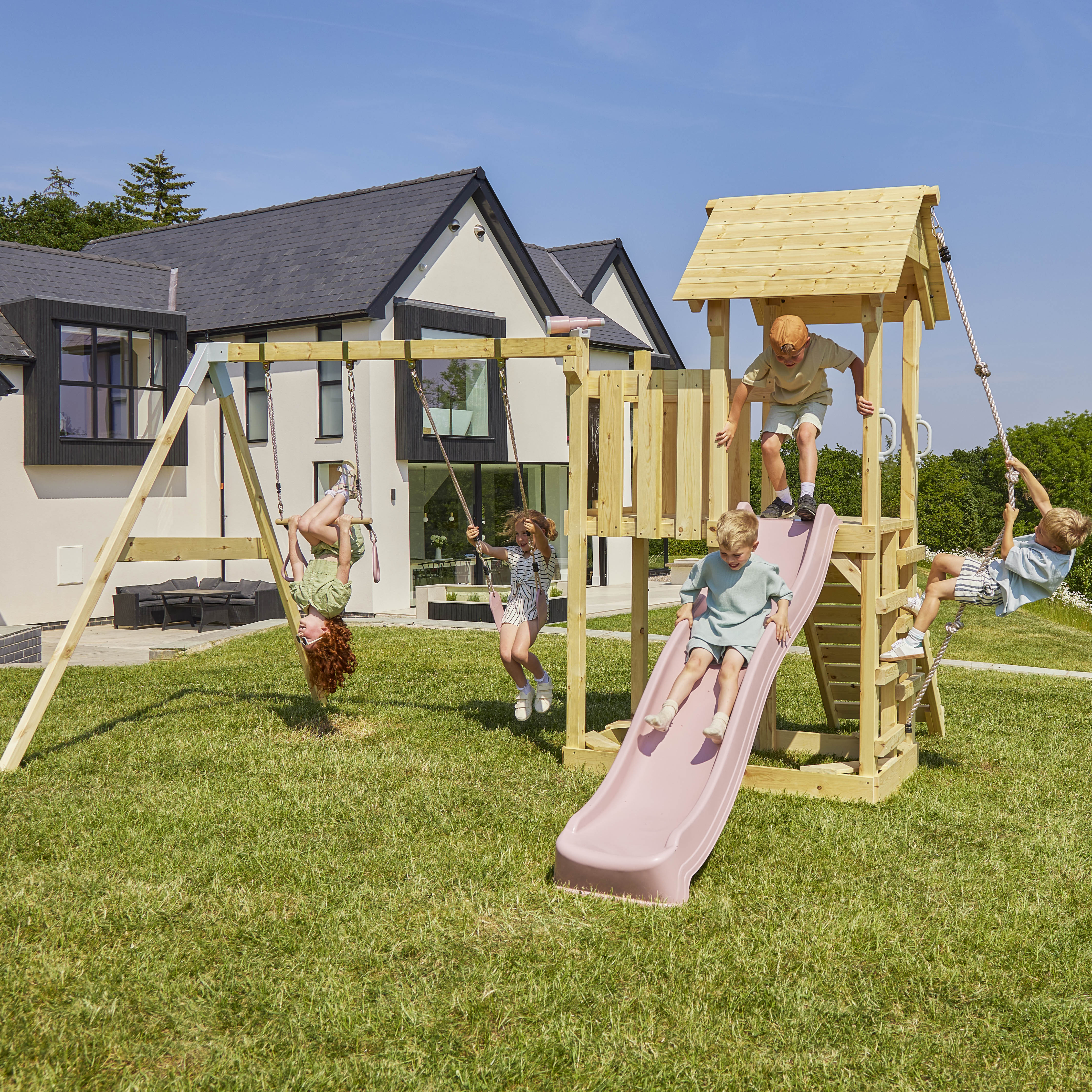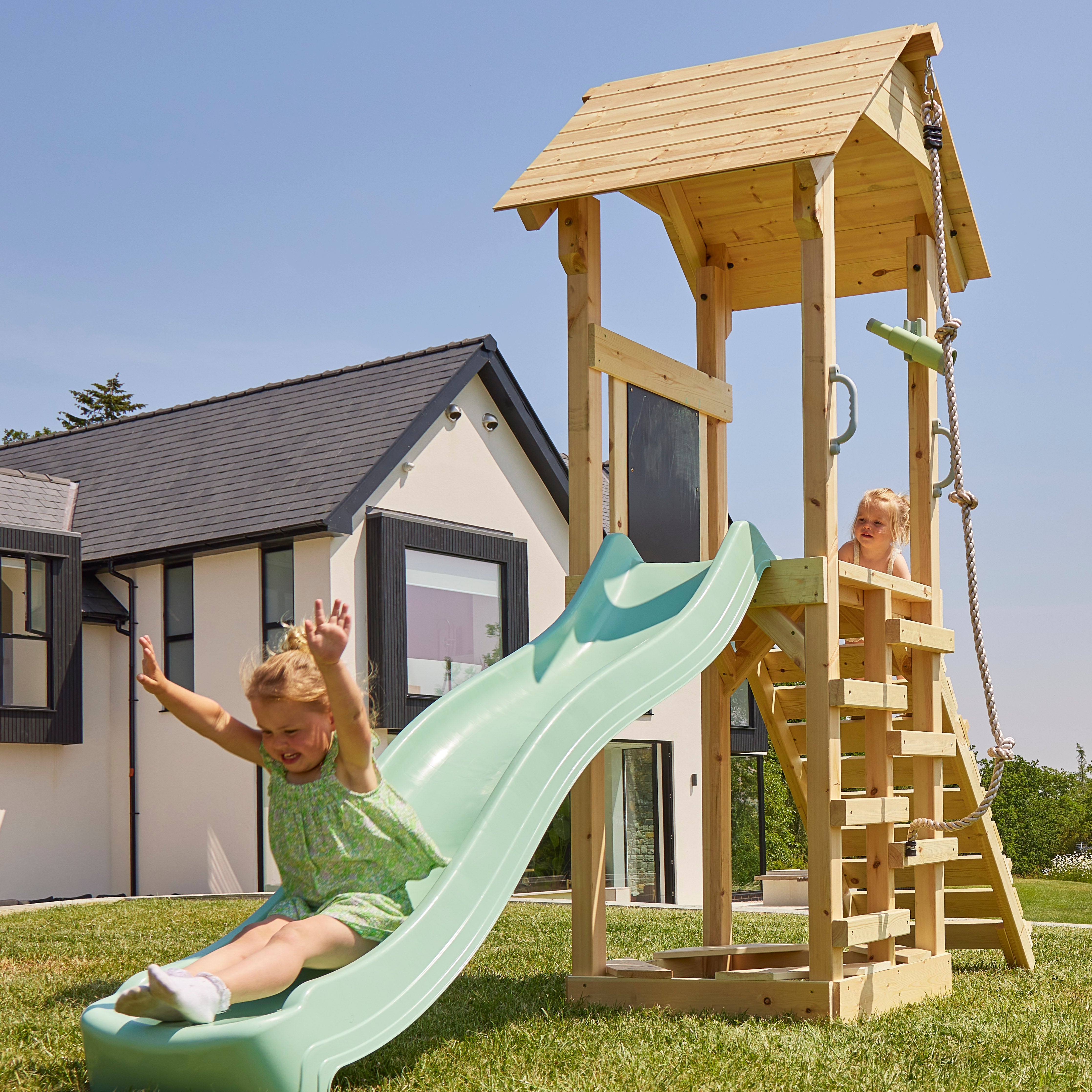 Wir versprechen dir eins: Wir haben für jede Grundstücksgröße die passenden Outdoor Spielgeräte. Wenn du nur einen kleinen Garten hast, kannst du dich für ein Spielhaus entscheiden. Wenn du stattdessen ein vielfältiges Spielgerät suchst, das verschiedene Spielangebote vereint, sind unsere Klettertürme und ideal. Sie laden mit Rutsche und Schaukeln zum ausgelassenen Toben ein. Teilweise halten unsere Klettertürme auch ein kleines Spielhaus bereit, in dem Kinder in verschiedene Rollenspiele eintauchen können. Alle Outdoor Spielgeräte aus unserem Haus bieten dir zudem die Möglichkeit, diese individuell nach den Wünschen deines Kindes zu gestalten.