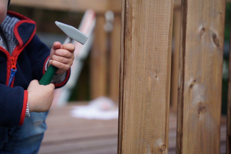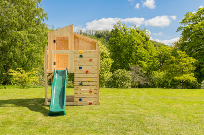 Vergiss nicht, das Holz vor der Montage mit der von uns empfohlenen Holzschutz-Lasur zu versehen und diese etwa jährlich aufzufrischen. So kannst du die Langlebigkeit des Stelzenhauses mit Rutsche und anderen Anbauten fördern. Verankerungen und nicht-hölzerne Komponenten der Spielhäuser (Rutschbahnen, Griffe und Trittelemente der Klettergerüste, Schaukelseile) solltest du regelmäßig auf Verschleiß und Beschädigungen prüfen.